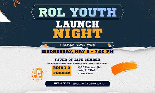 River of Life Church 410 East Chapman Road, Lutz, FL, United StatesROL YOUTH LAUNCH NIGHT 🎉 FREE PIZZA. GAMES. MUSIC. [...]